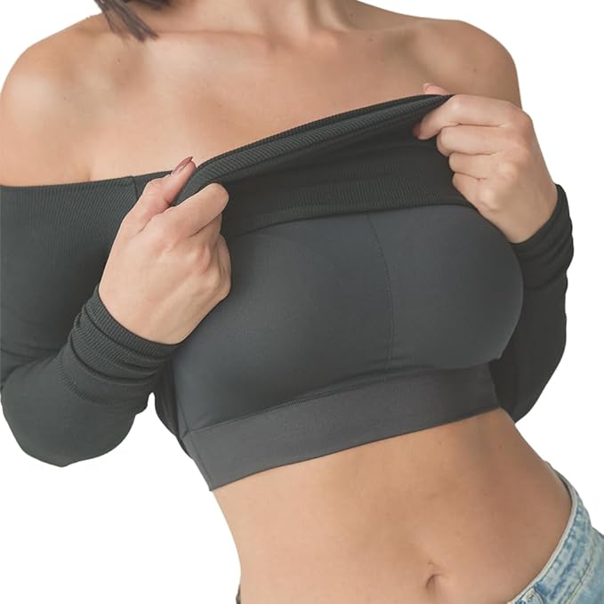 Our Braless Off-Shoulder Top is designed to give you a lifted, secure, and flattering fit — all while feeling completely comfortable and bra-free.